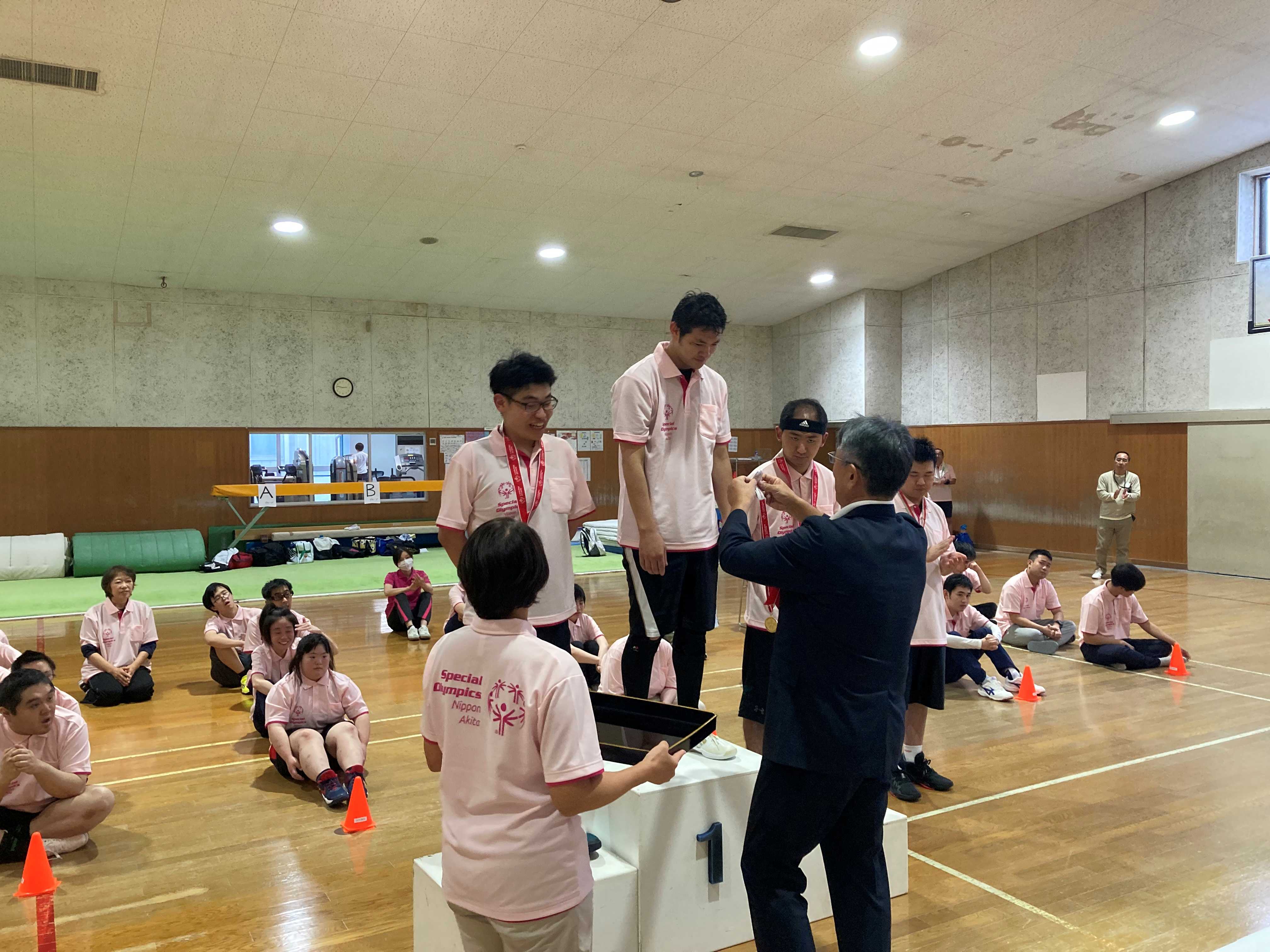アスリートたちは10メートルドリブルやキャッチ&パスなどの競技で記録を競った後、ボランティアによる1チームを含む3チームに分かれて試合を楽しみました。